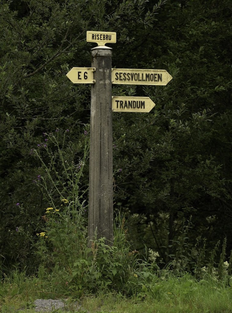Et skiilt som viser retning til e6, sessvollmoen og trandum