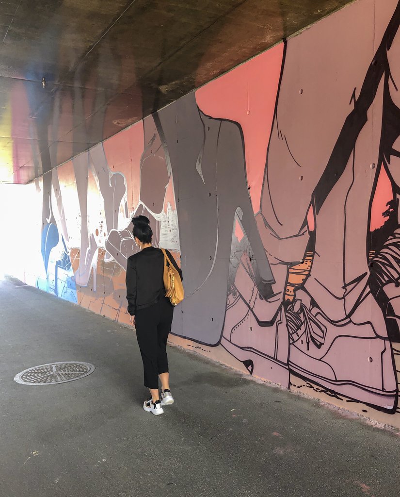 Gatekunst i undergangen i Henrik Bullsvei i Jessheim sentrum. Laget av Eric Ness Christiansen