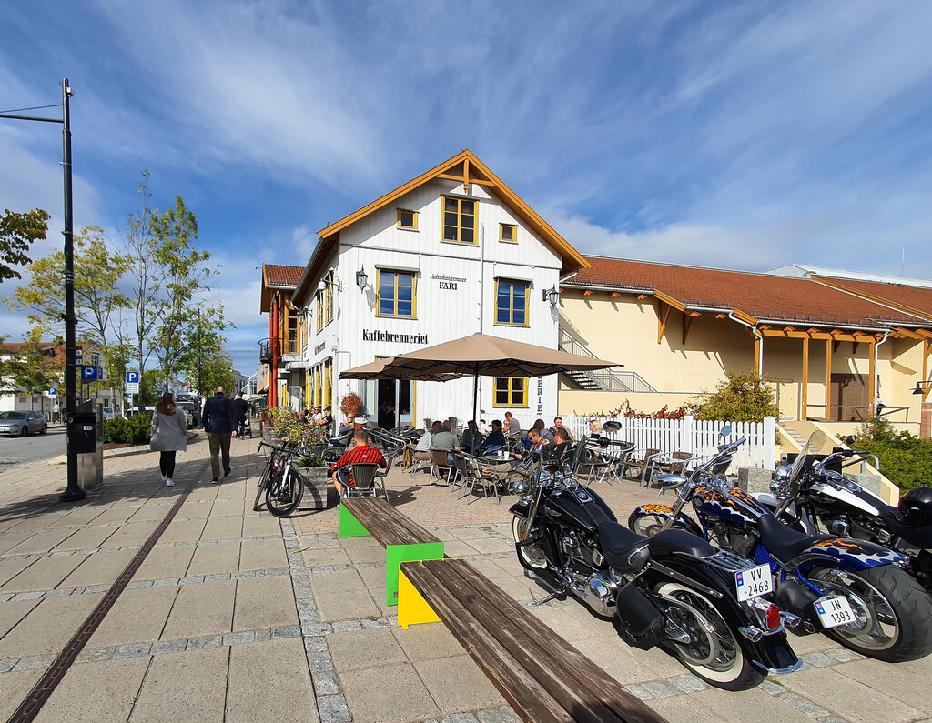 Folk i gatene og på kafé på Jessheim